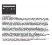 Charles Carson, medallista de oro del Salón de otoño 2002, Salón internacional de las Bellas Artes de Montreal, presenta obras espectaculares.