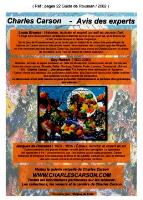 Sur le plan de l'investissement, je ne doute pas un instant de la valeur très prometteuse de l'oeuvre de Carson dans un très proche avenir. Nous sommes très conscient que des Riopelle, on n'en rencontre pas tous les jours. Cette fois, pourtant nous avons en Charles Carson un artiste de ce calibre, si ce n'est un artiste de calibre supérieur.>>