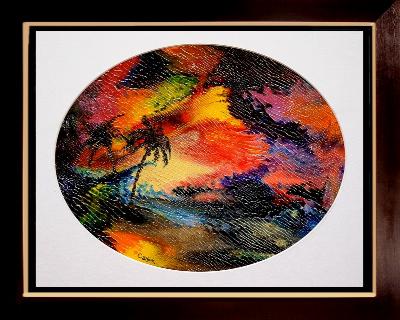 Artiste:Charles Carson titre : Atardecer tropical Médium : Acrylique sur toile Technique : Carsonisme mouvement Format : 11 x 14 en pouces 27.9 x 35.6 en cm Vendu
