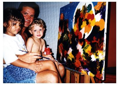 Artiste:Charles Carson titre : L'artiste en compagnie de sa fille Mélissa Alexandra et son petit neveux Christof Médium : Photo Technique : Carsonisme mouvement Format : x en pouces x en cm Vendu