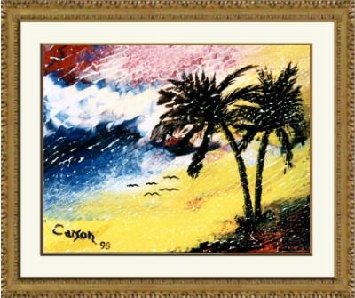 Artiste:Charles Carson Collection: Mélissa Carson titre : Rêve tropical, Médium : Acrylique sur toile Technique : Carsonisme mouvement Format : 3.5 x 4.5 en pouces 8.9 x 11.4 en cm Vendu